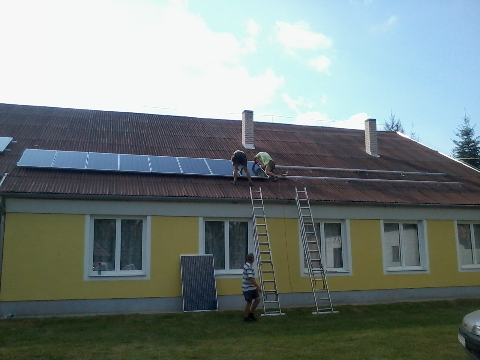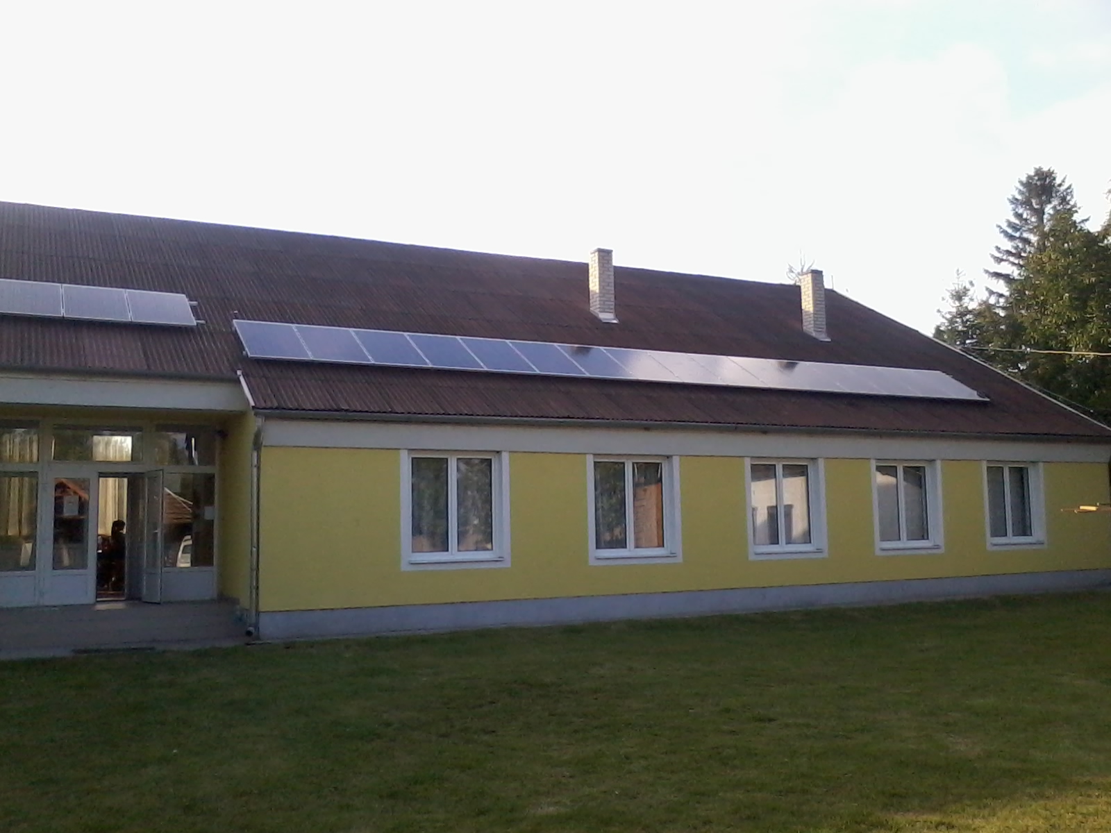 A napelem modulok a kultúrház ferde tetőjére kerültek kétszer egy sorban, a modulok álló elhelyezkedésűek.