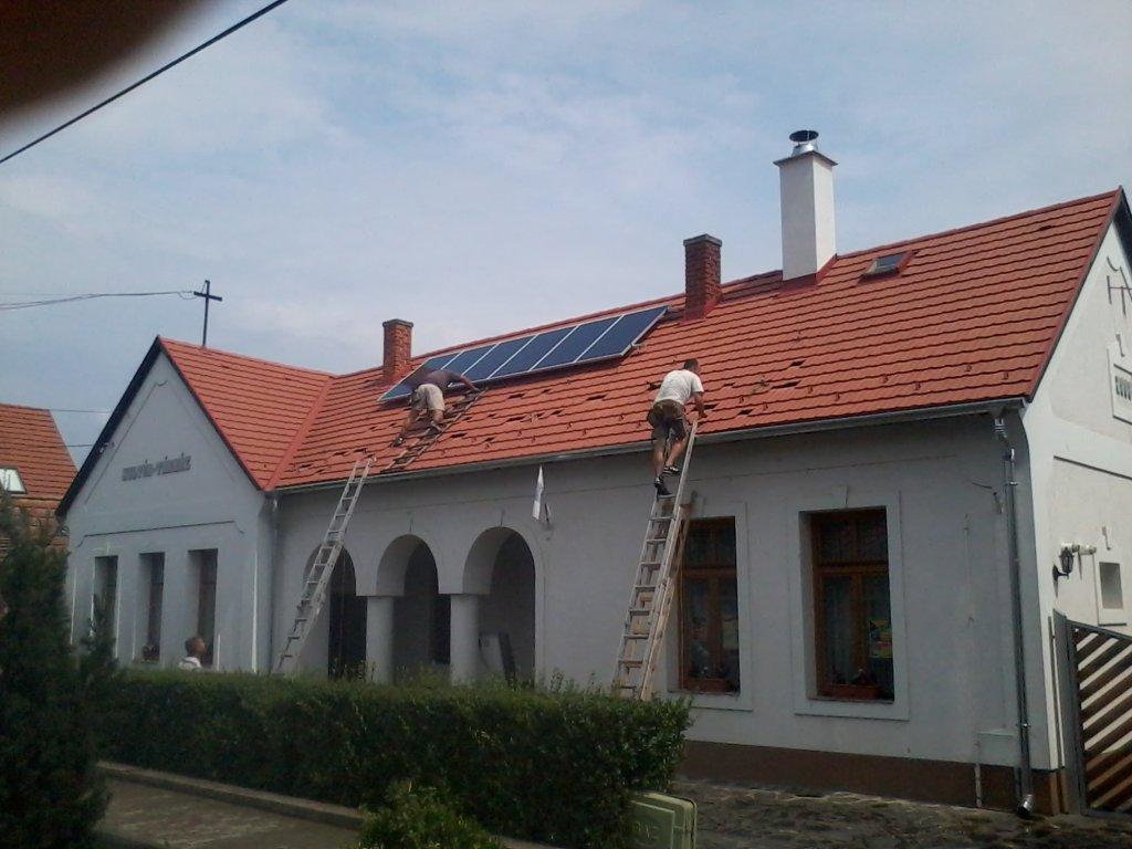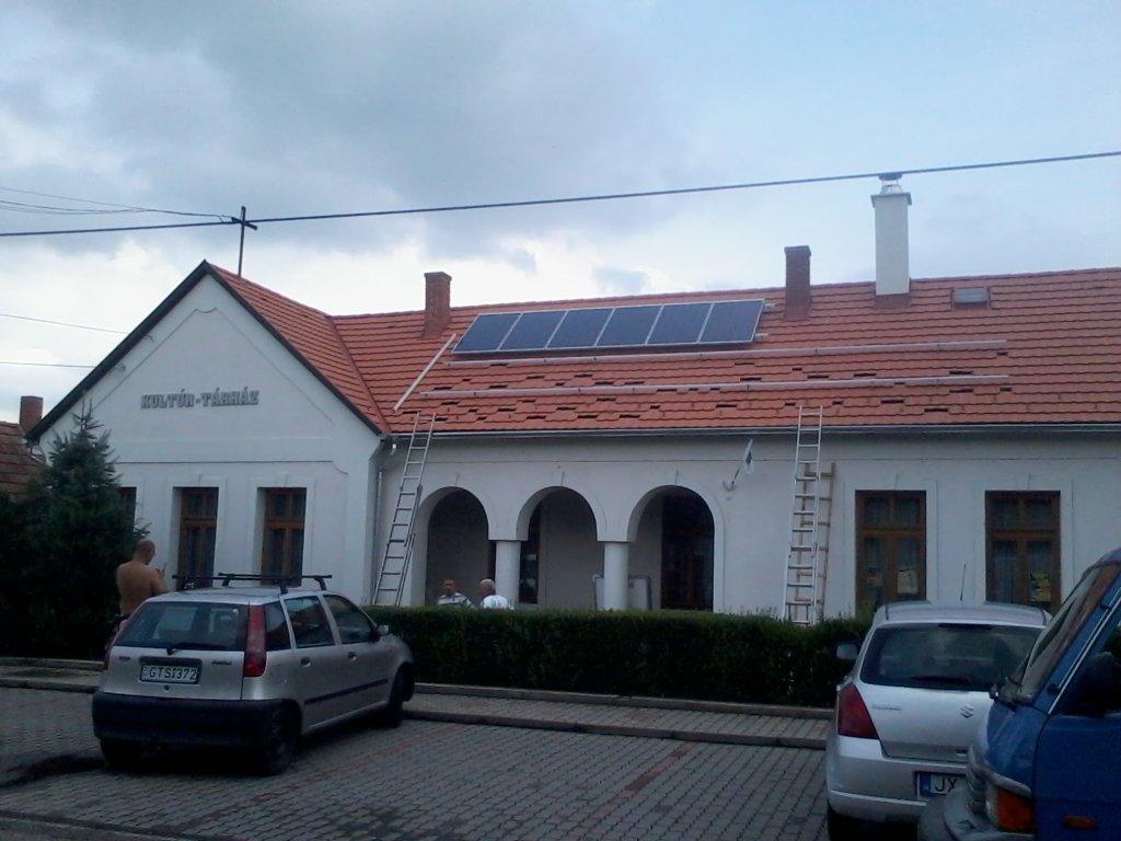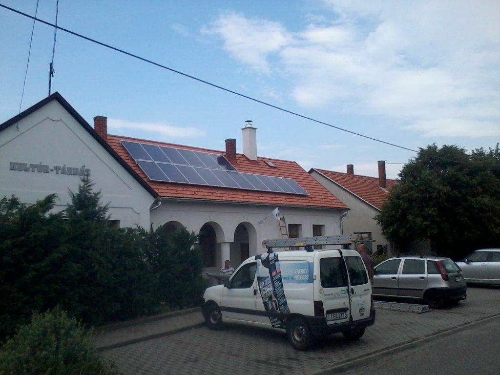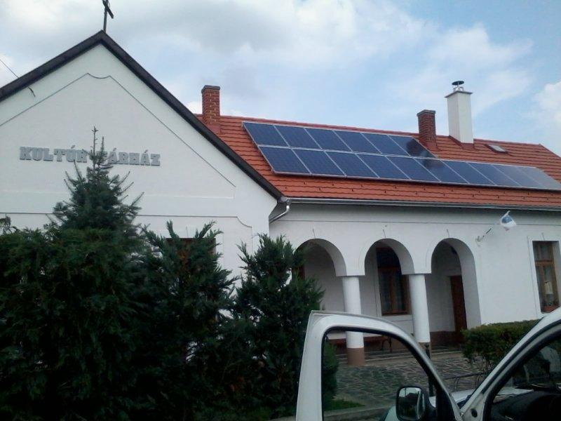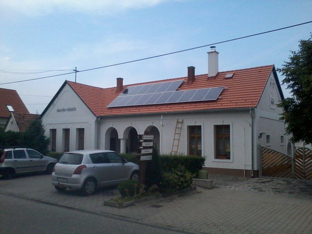 Művelődési ház. A napelemes rendszer összesen 16 db Korax KS 245 polikristályos napelem modult tartalmaz, így a beépített teljesítmény 3,92 kWp.