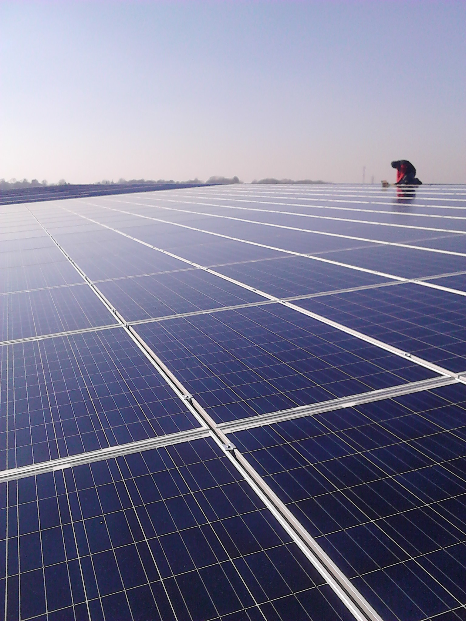 A napelem modulok az üzem területén az egyik raktárépület Lindab trapézlemez borítású ferde tetősikján helyezkednek el. A raktárépület nyeregtetőjének kedvező tájolású oldalának felülete lényegesen nagyobb, mint a 200 db napelemes modul helyigénye, így valamennyi modul egy blokkban, egy tetősíkon helyezkedik el. Fontos hangsúlyozni, hogy a kiserőművekkel szemben a tűzvédelmi előírások és a hálózati csatlakozási pontokkal szemben támasztott követelmények szigorúbbak, minta HMKE-ek előírásai.