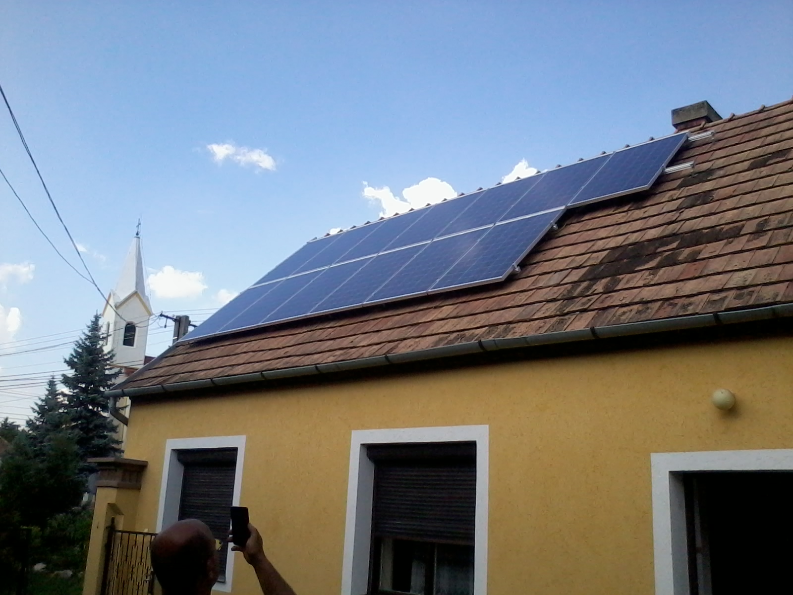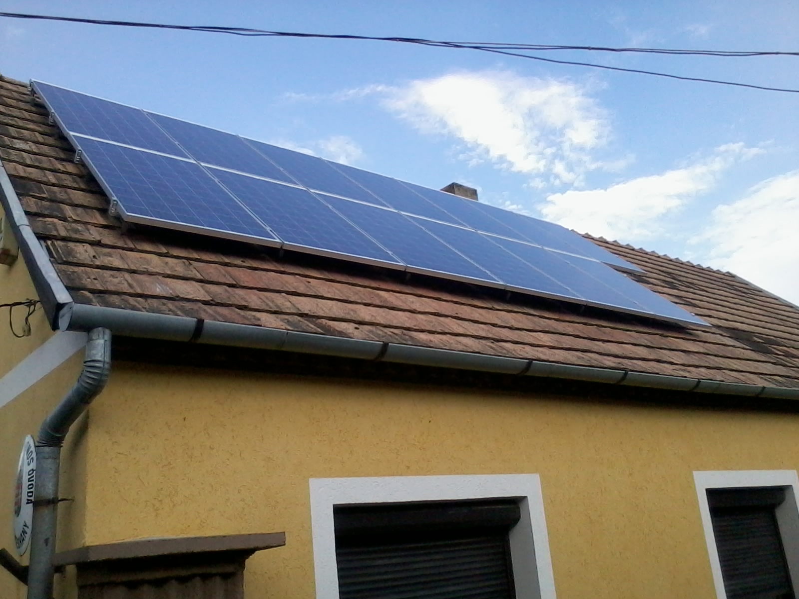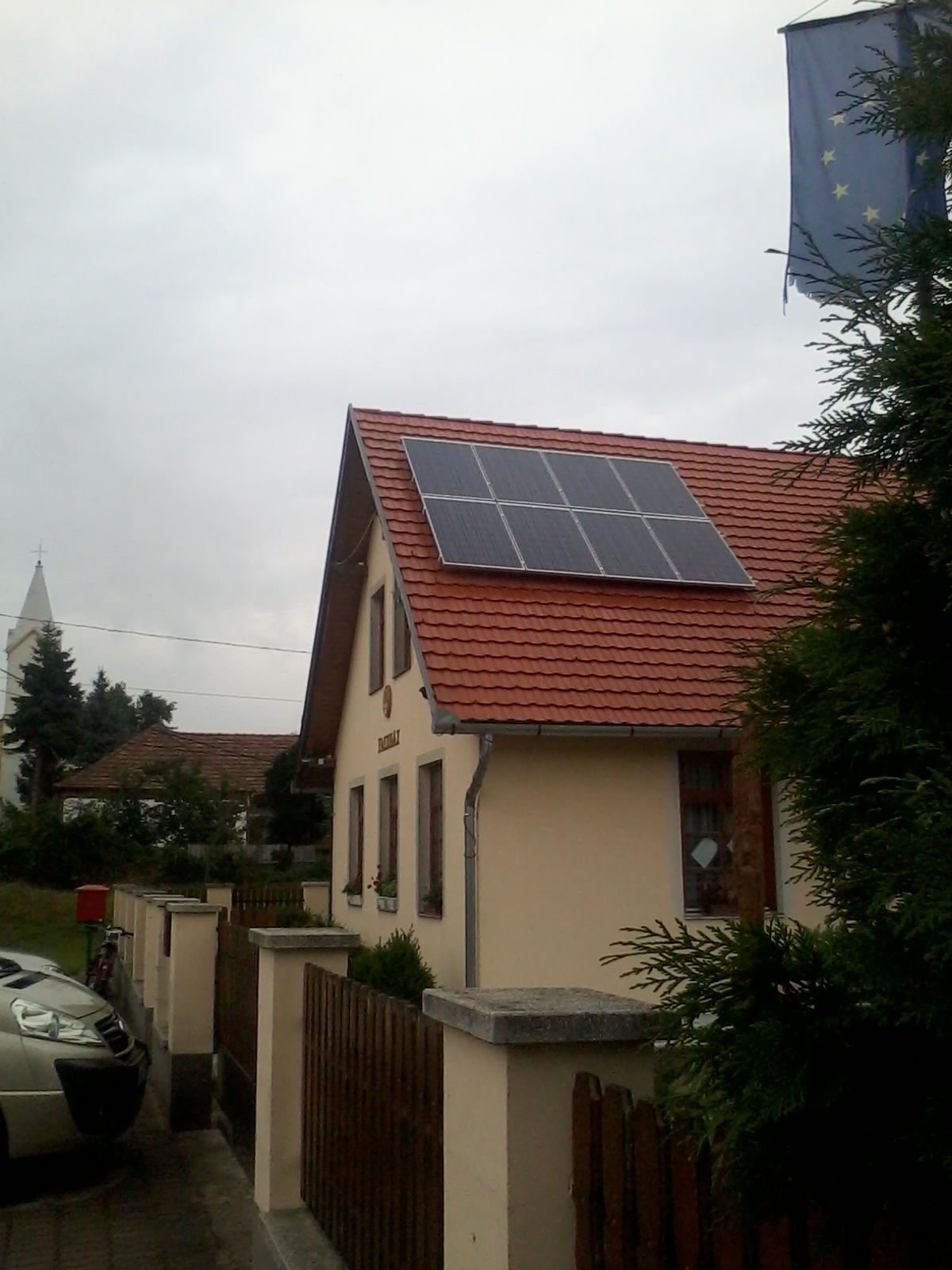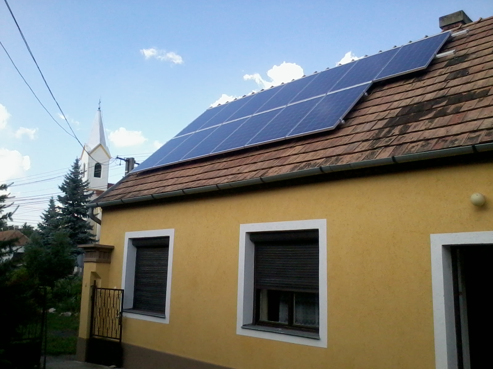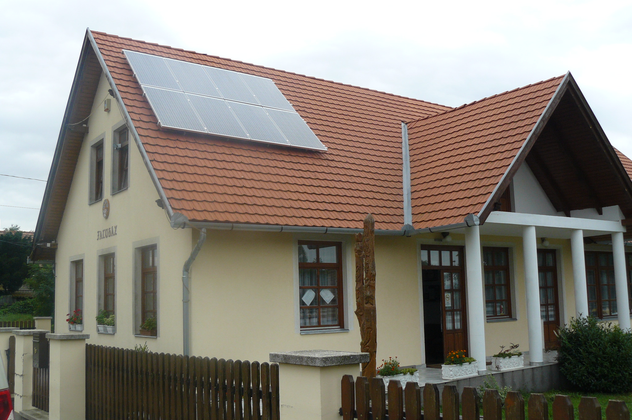 Faluház. A napelemes rendszer összesen 8 db Korax KS 245 polikristályos napelem modult tartalmaz, a beépített teljesítmény 1,96 kWp.