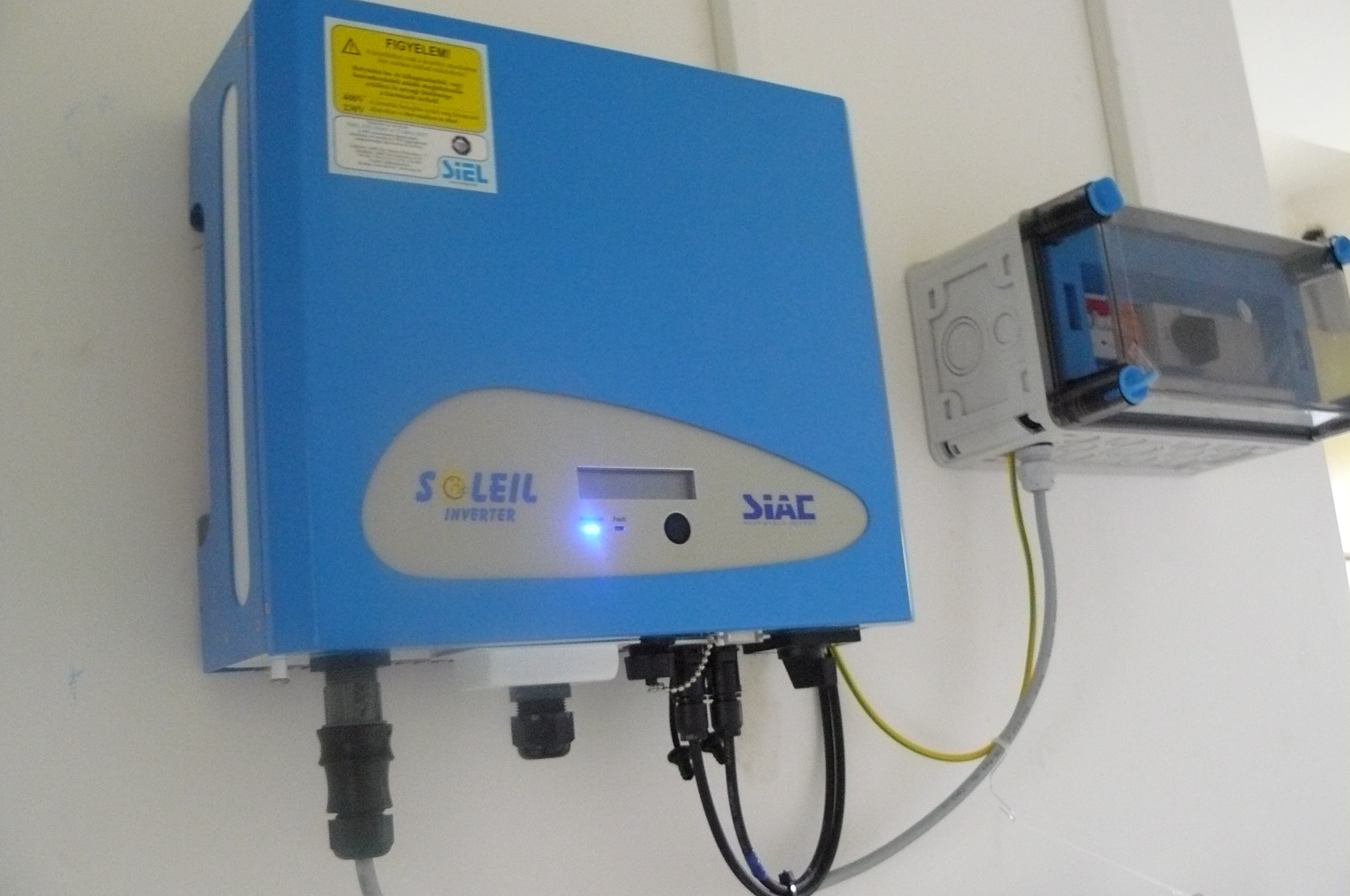 A napelem modulok az épület ferde cseréptetőjére kerültek egy blokkban, 2*4 sorban álló elhelyezkedéssel. A villamos hálózathoz a rendszer egy Siac-Solei 2 inverteren keresztül csatlakozik.