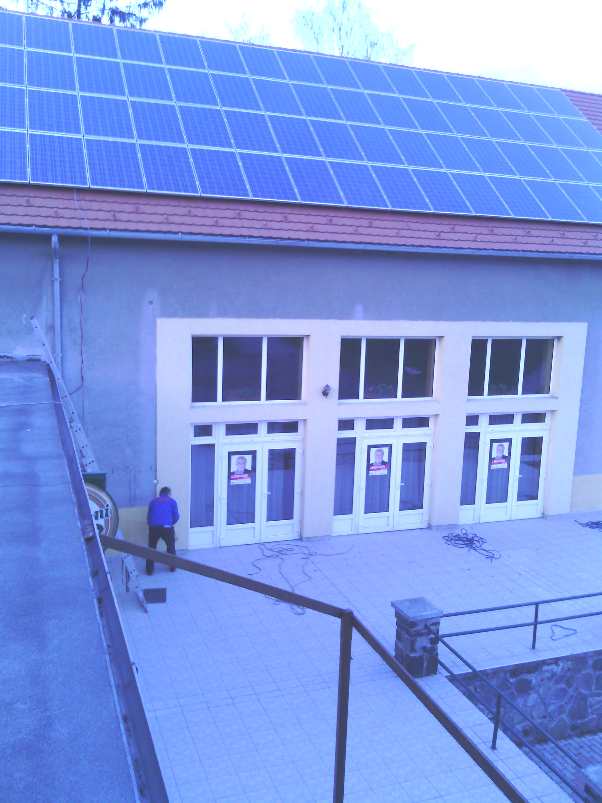 A kultúrház tetőcserép fedésű ferdetetővel rendelkezik, amely ideális körülményeket biztosít a napelemes modulok telepítéséhez. A modulok optimális tájolással és dőlésszögben telepíthetőek. A modulok 4 álló sorban kerültek elhelyezésre.