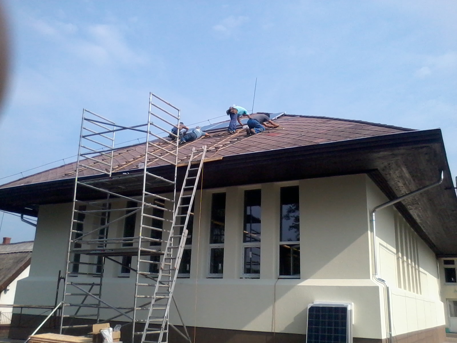 Tekintettel arra, hogy az iskola épülete és tetőszerkezete is osztott, illetve viszonylag nagyszámú napelemes modult kellett telepíteni, ezért a modulok csak több, részben eltérő tájolású blokkban voltak elhelyezhetők. Az eltérő tájolású modulok külön inverterekhez kapcsolódnak. A tetőszerkezet ferdetető, cserépborítással.